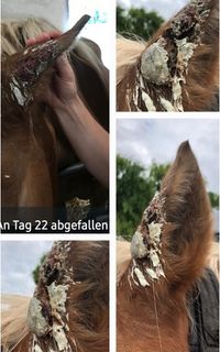 Das Sarkoid befand sich am Ohr meiner Haflinger Stute. Nach 22 Tagen ist das Sarkoid abgefallen. Wir konnten somit einer Operation aus dem Weg gehen.